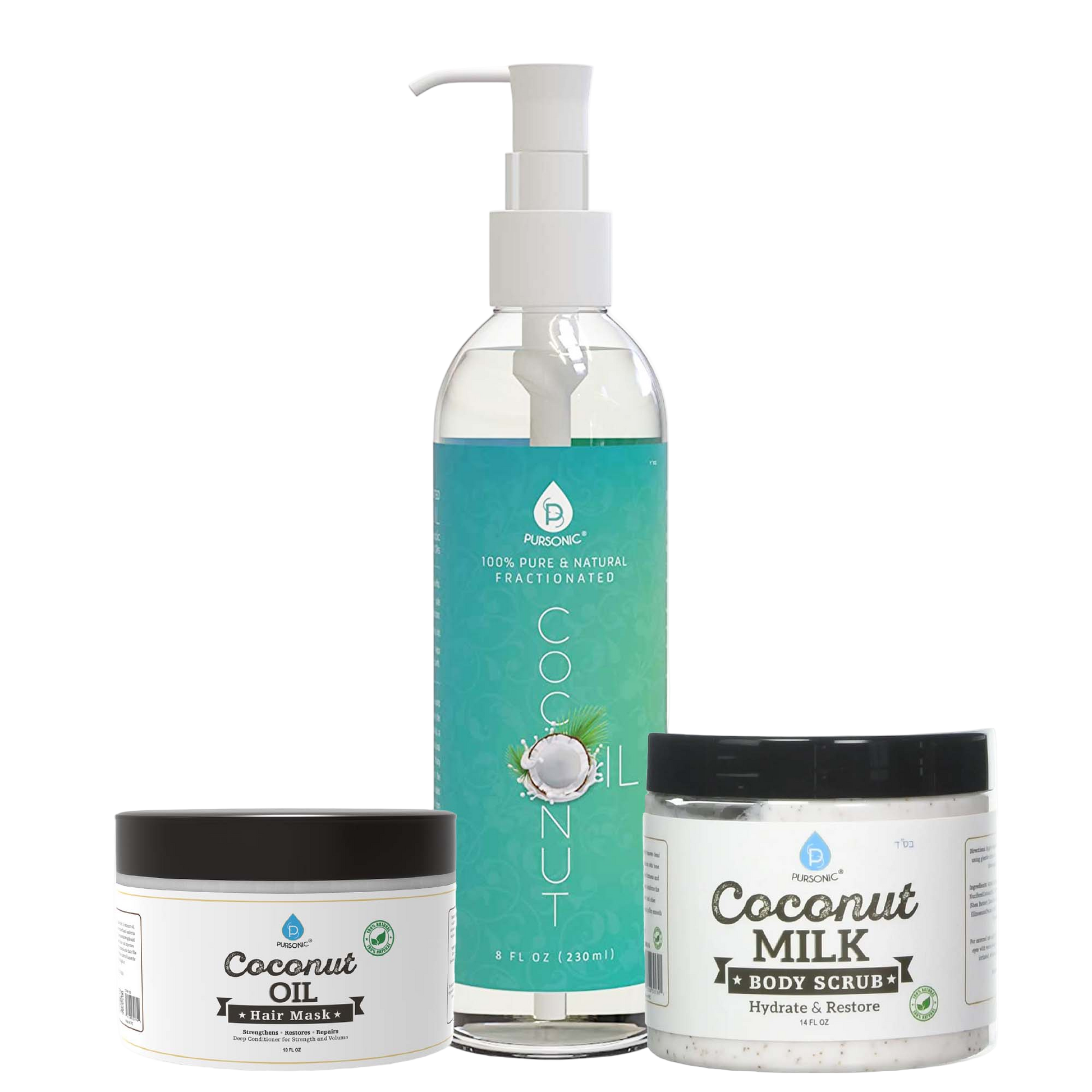 Elevate your beauty routine with the Ultimate Coconut Beauty Bundle, featuring three luxurious coconut-based products from Pursonic. This bundle is designed to nourish and pamper your skin and hair, leaving you feeling refreshed, rejuvenated, and radiant.
